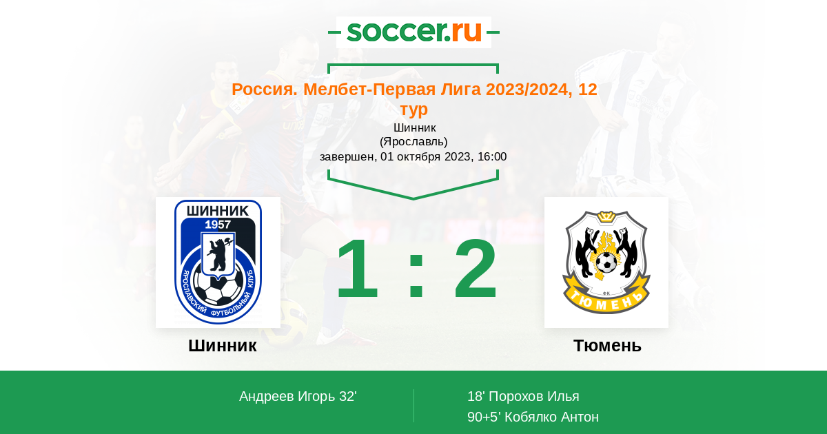 Шинник - Тюмень: обзор матча 1 октября 2023