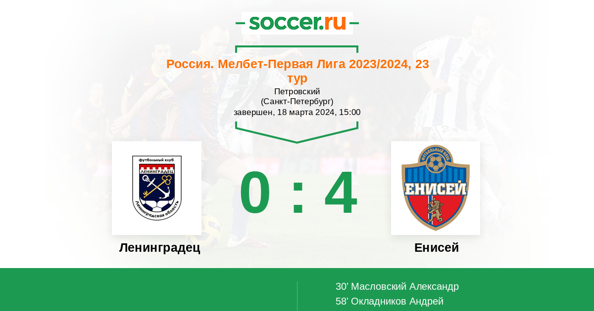 Ленинградец - Енисей: обзор матча 18 марта 2024