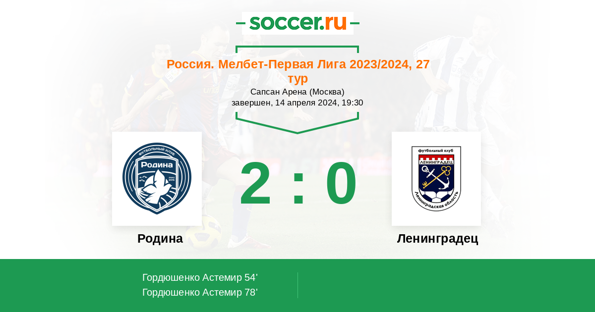 Родина - Ленинградец: обзор матча 14 апреля 2024