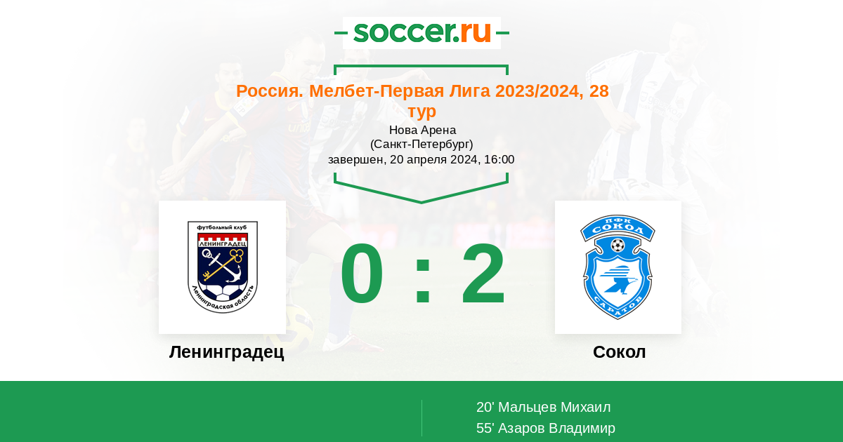 Ленинградец - Сокол: обзор матча 20 апреля 2024