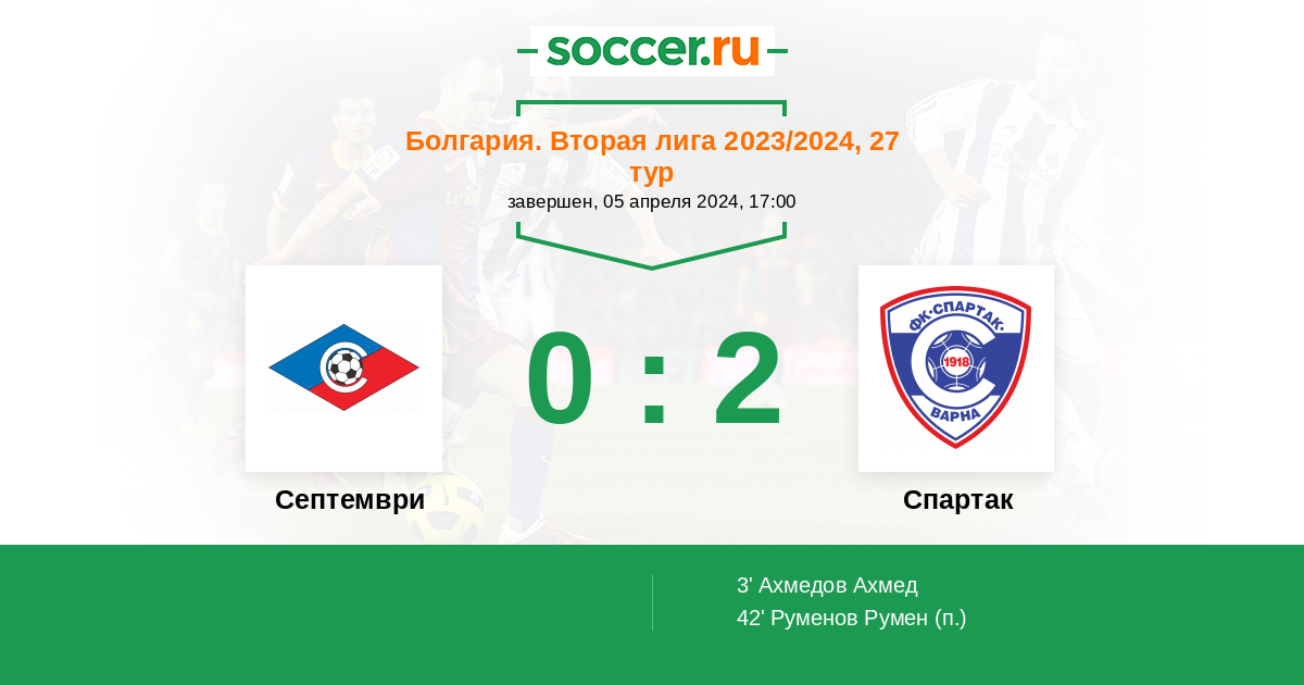 Септември - Спартак: обзор матча 5 апреля 2024