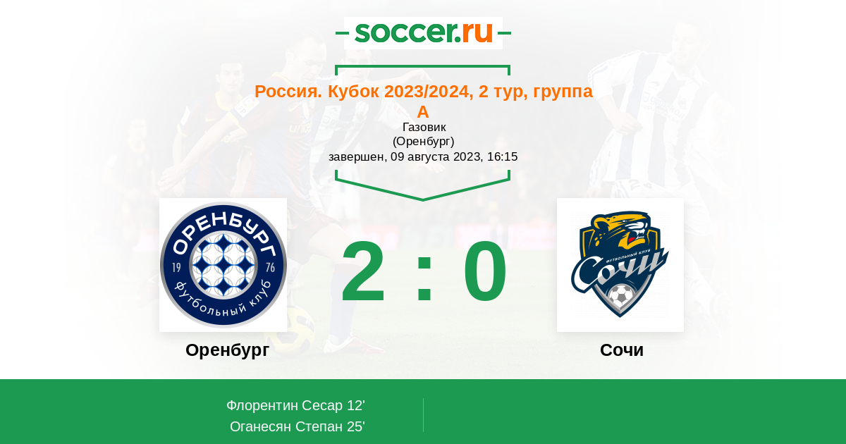 Оренбург - Сочи: обзор матча 9 августа 2023