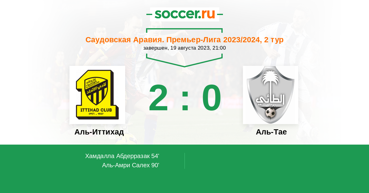 Аль-Иттихад - Аль-Тае: обзор матча 19 августа 2023