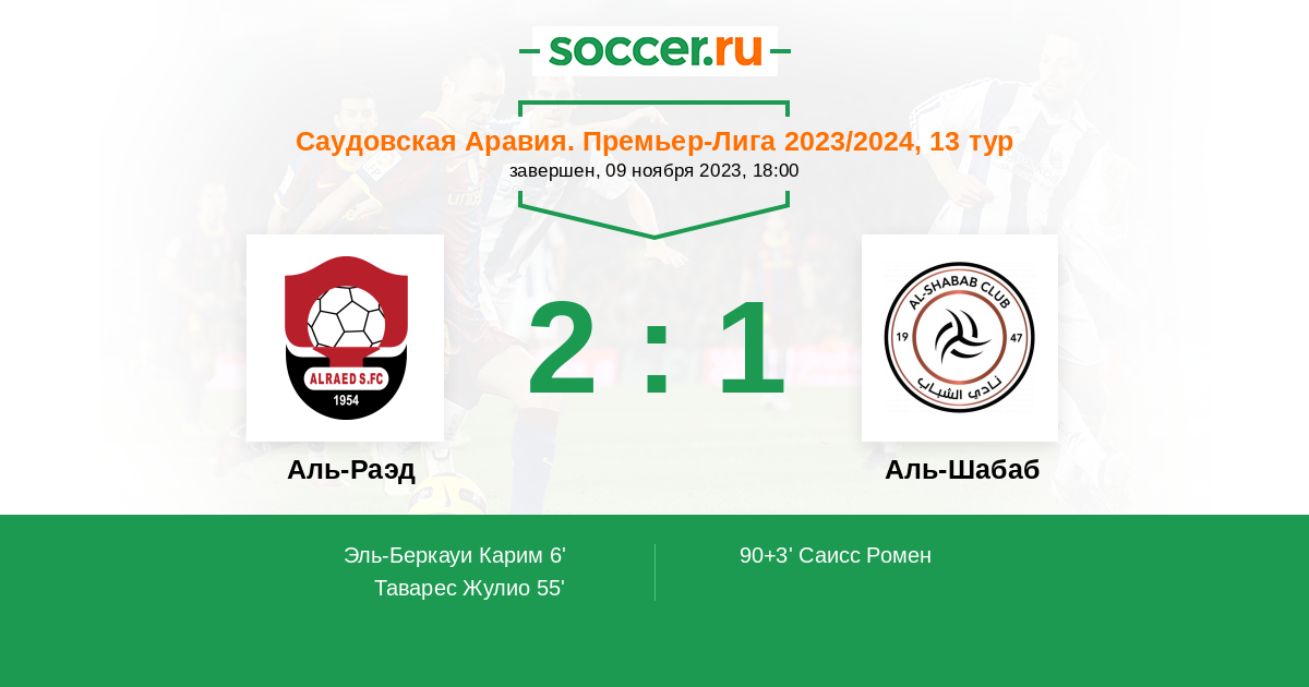 Аль-Раэд - Аль-Шабаб: обзор матча 9 ноября 2023