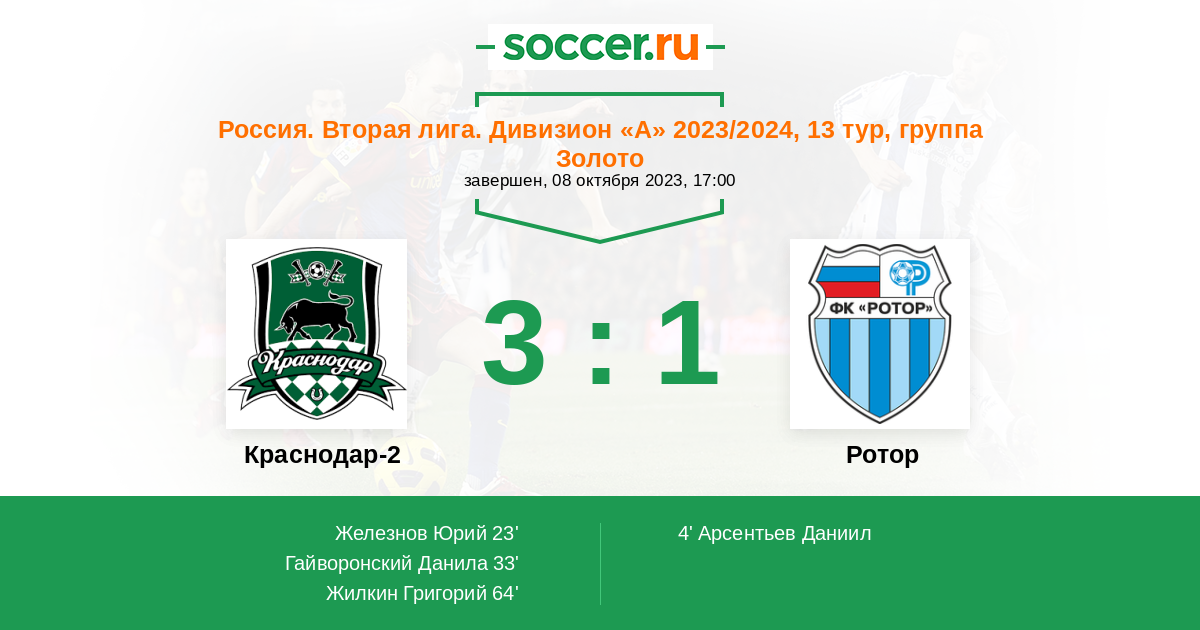 Краснодар-2 - Ротор: обзор матча 8 октября 2023