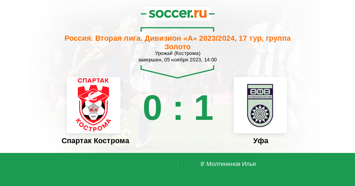 Спартак Кострома - Уфа: обзор матча 5 ноября 2023