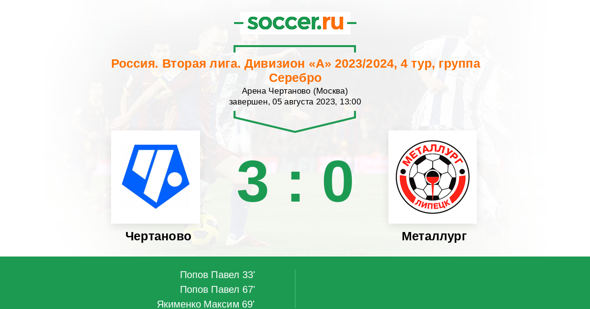 Чертаново - Металлург: обзор матча 5 августа 2023