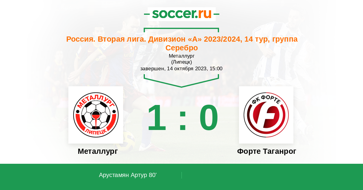 Металлург - Форте Таганрог: обзор матча 14 октября 2023