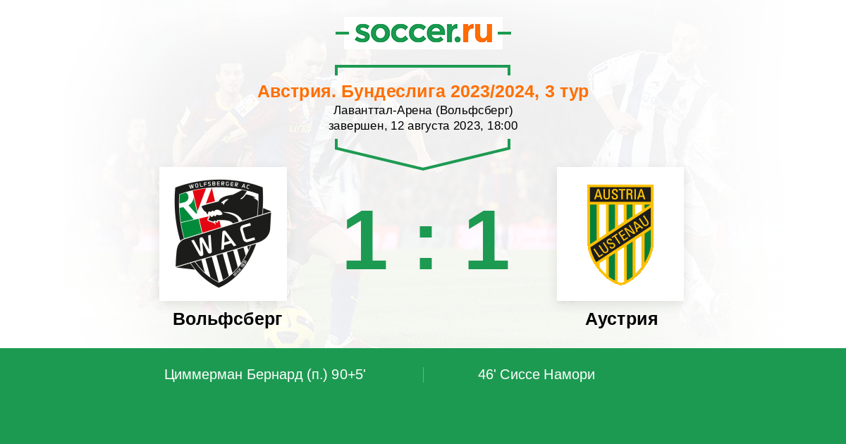 Вольфсберг - Аустрия: обзор матча 12 августа 2023