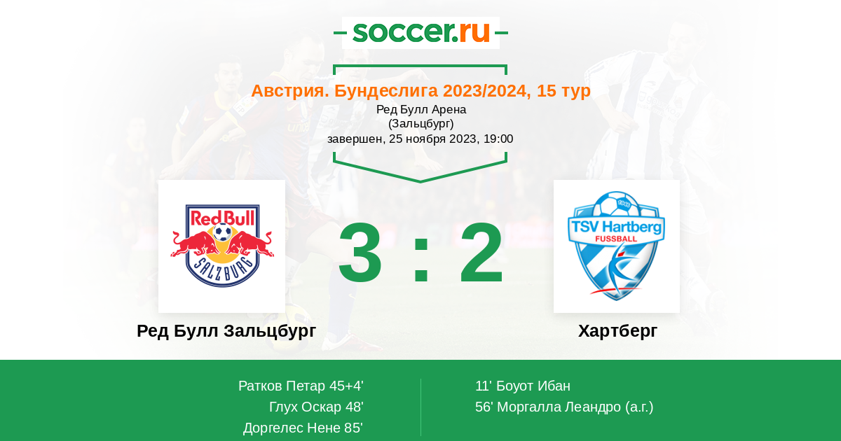 Ред Булл Зальцбург - Хартберг: обзор матча 25 ноября 2023