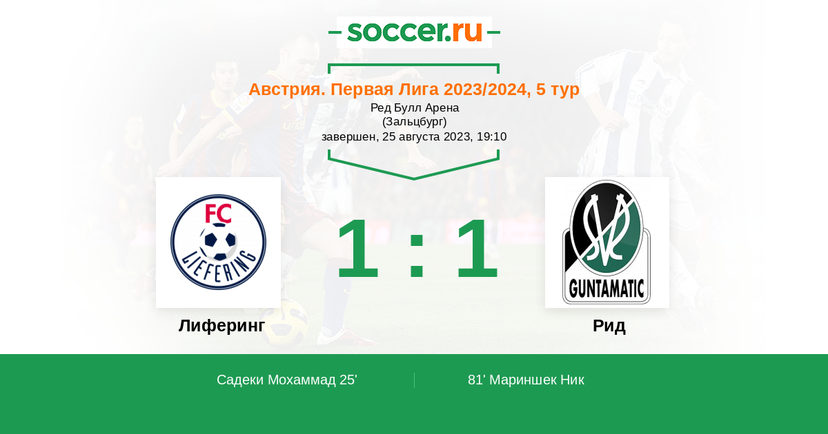 Лиферинг - Рид: обзор матча 25 августа 2023