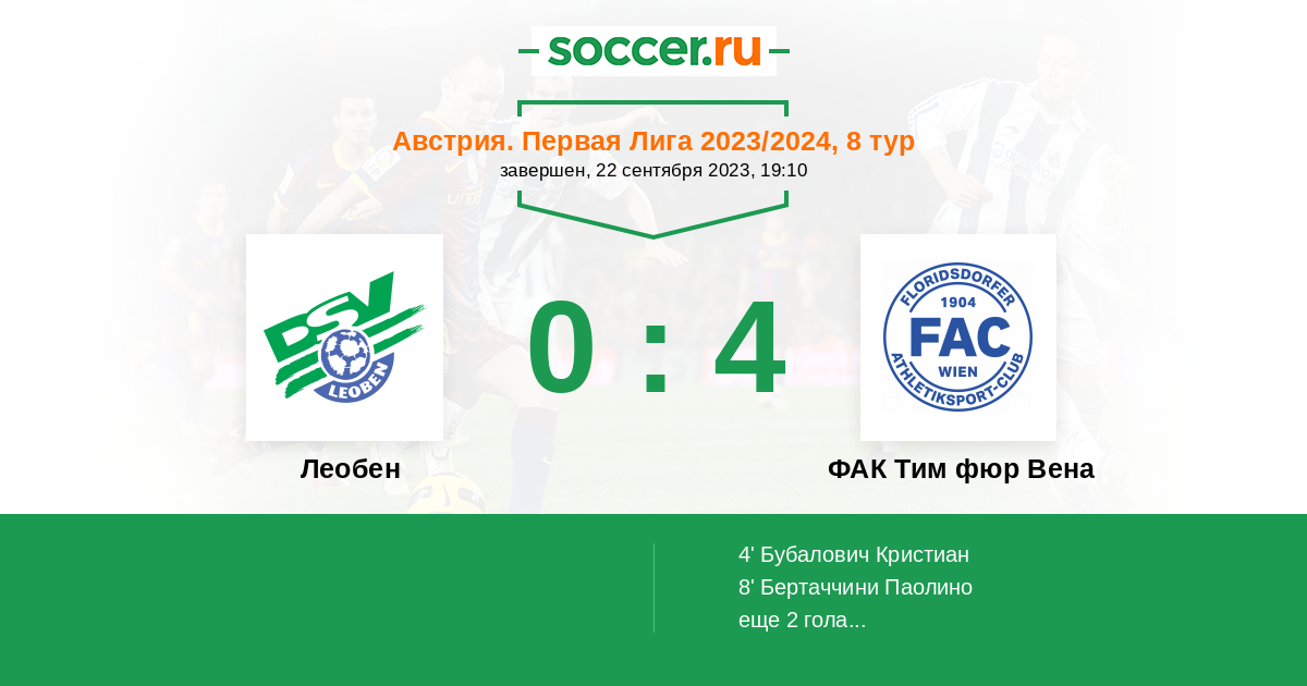 Леобен - ФАК Тим фюр Вена: обзор матча 22 сентября 2023
