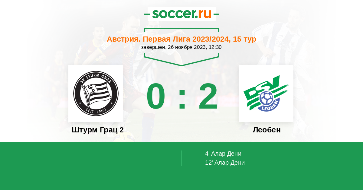 Штурм Грац 2 - Леобен: обзор матча 26 ноября 2023