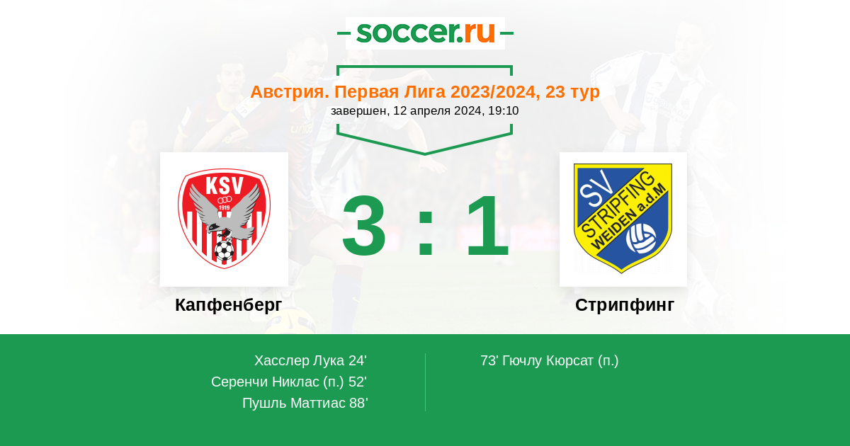 Капфенберг - Стрипфинг: обзор матча 12 апреля 2024