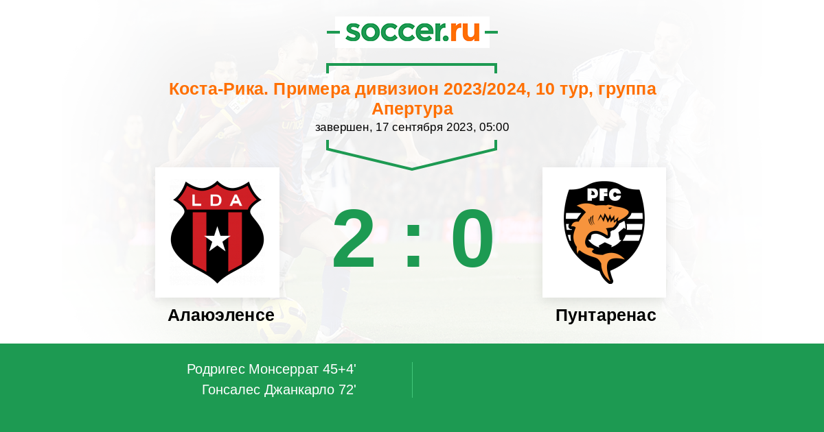 Алаюэленсе - Пунтаренас: обзор матча 17 сентября 2023