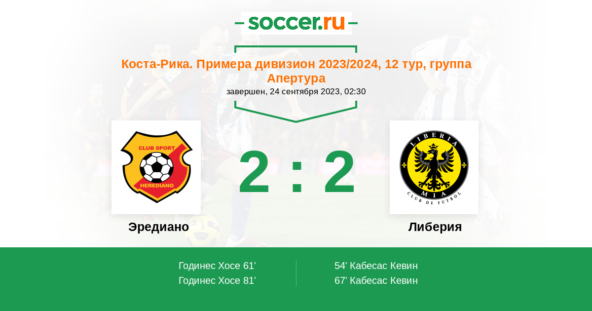 Эредиано - Либерия: обзор матча 24 сентября 2023