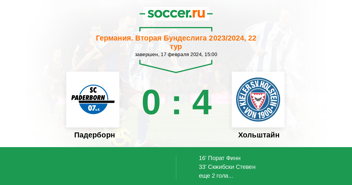 Падерборн - Хольштайн: обзор матча 17 февраля 2024