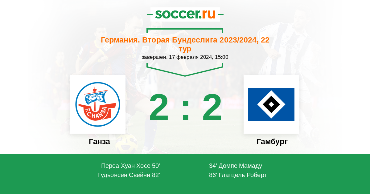 Ганза - Гамбург: обзор матча 17 февраля 2024