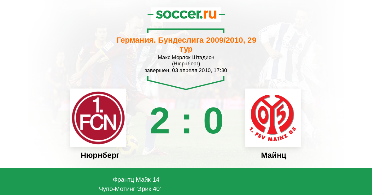Нюрнберг - Майнц: обзор матча 3 апреля 2010