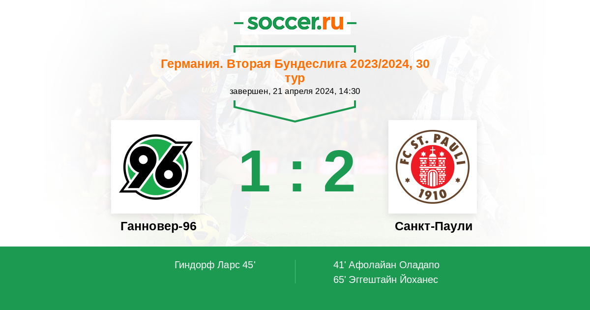 Ганновер-96 - Санкт-Паули: обзор матча 21 апреля 2024