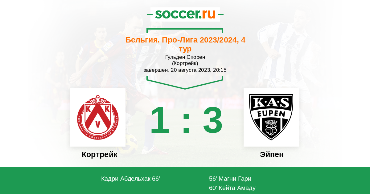 Кортрейк - Эйпен: обзор матча 20 августа 2023