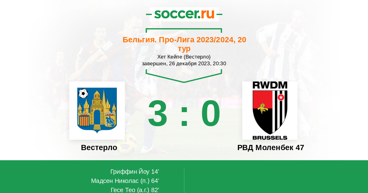 Вестерло - РВД Моленбек 47: обзор матча 26 декабря 2023