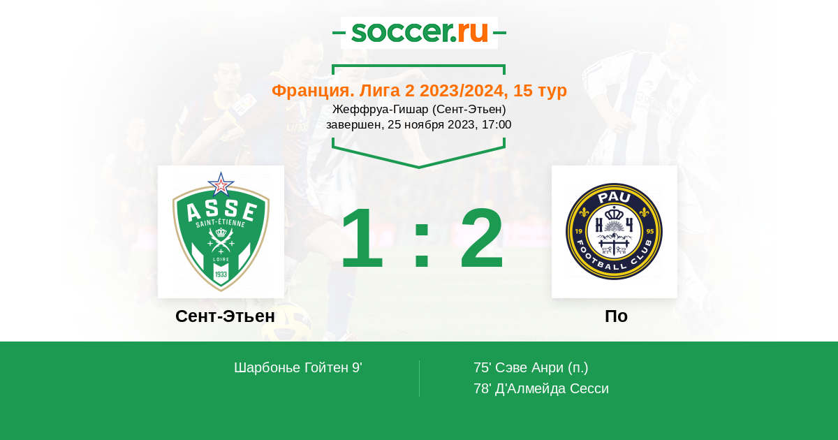 Сент-Этьен - По: обзор матча 25 ноября 2023