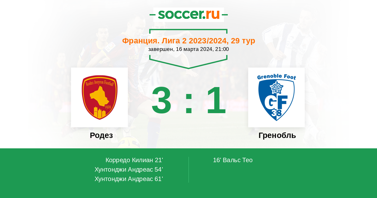 Родез - Гренобль: обзор матча 16 марта 2024