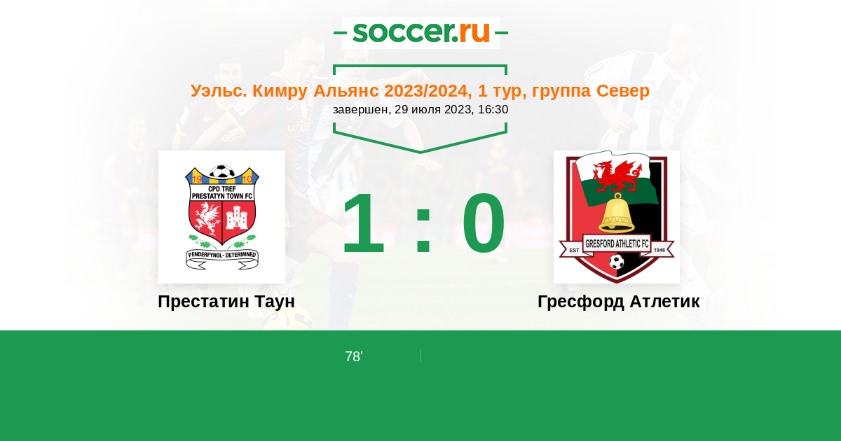 Престатин Таун - Гресфорд Атлетик: обзор матча 29 июля 2023