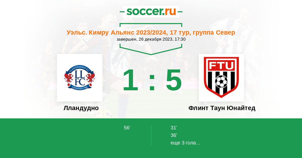 Лландудно - Флинт Таун Юнайтед: обзор матча 26 декабря 2023