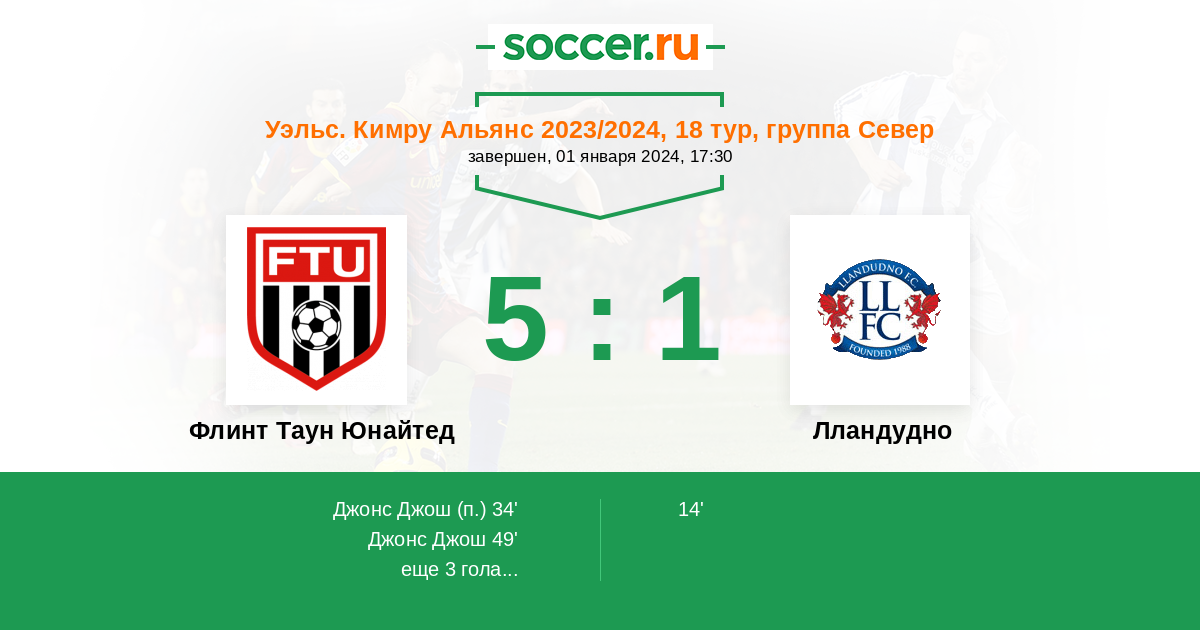 Флинт Таун Юнайтед - Лландудно: обзор матча 1 января 2024