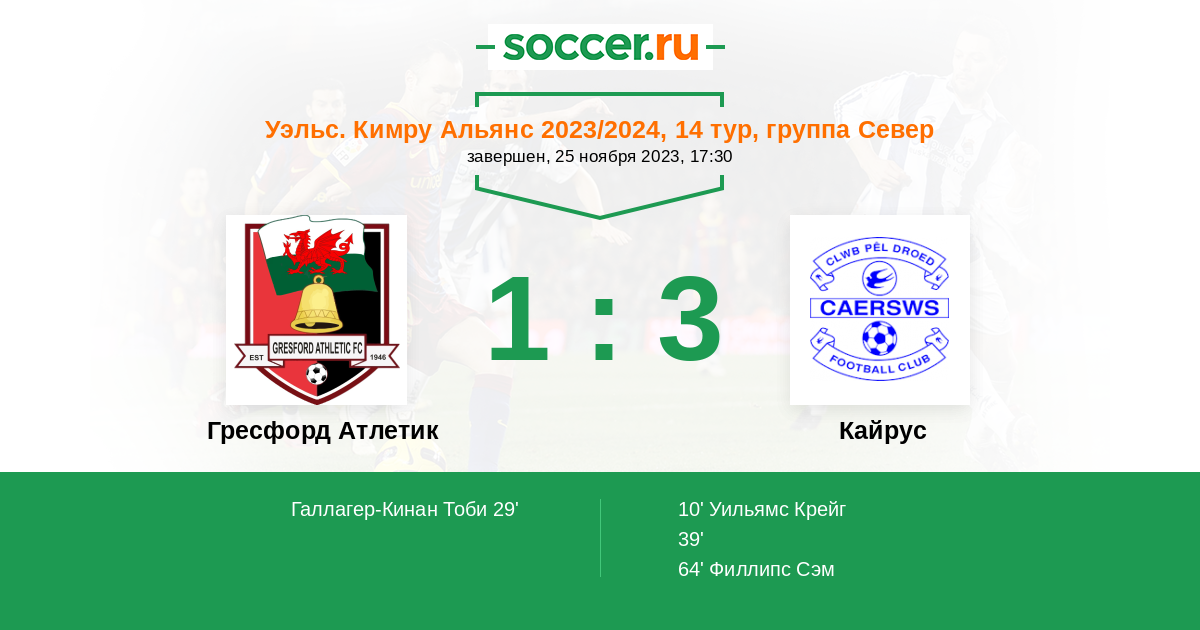 Гресфорд Атлетик - Кайрус: обзор матча 25 ноября 2023