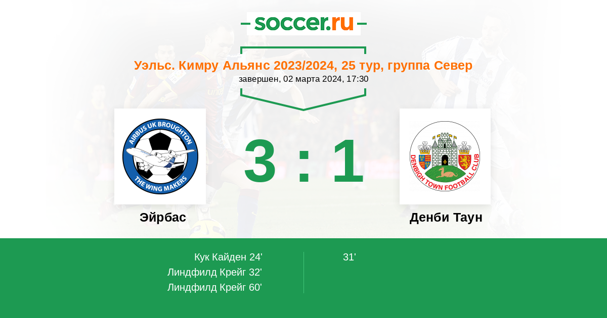 Эйрбас - Денби Таун: обзор матча 2 марта 2024