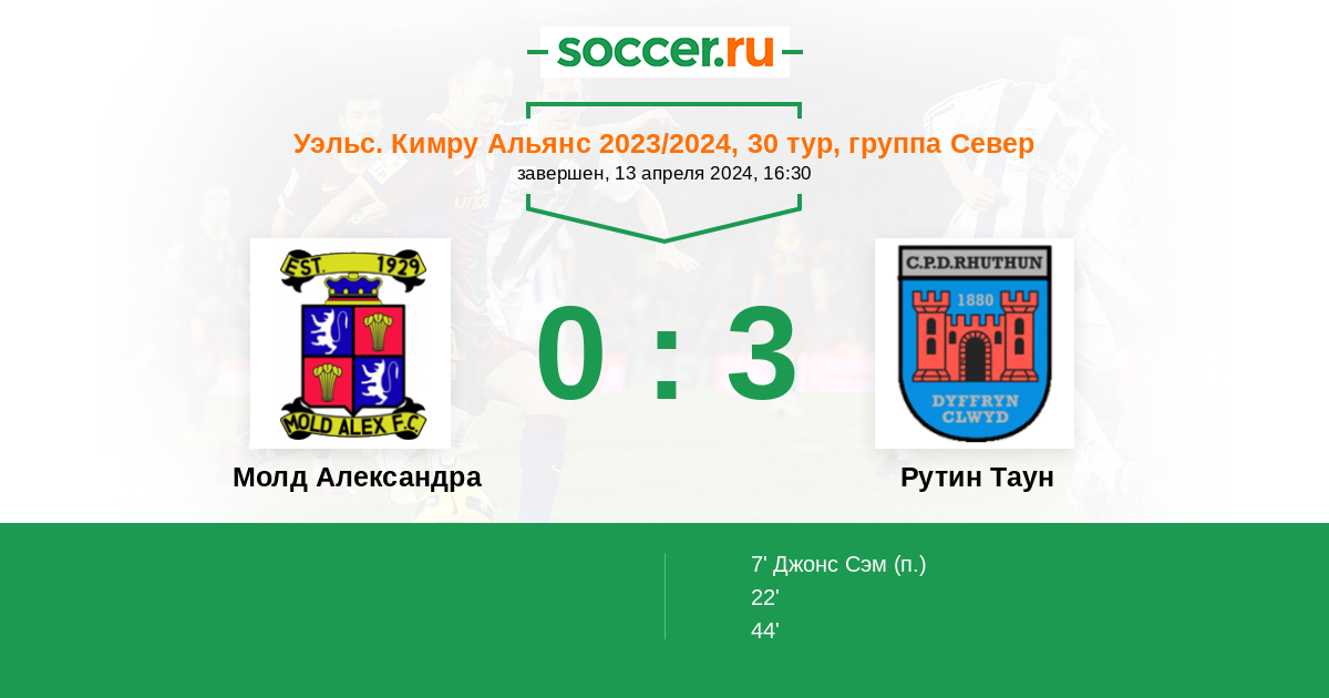 Молд Александра - Рутин Таун: обзор матча 13 апреля 2024