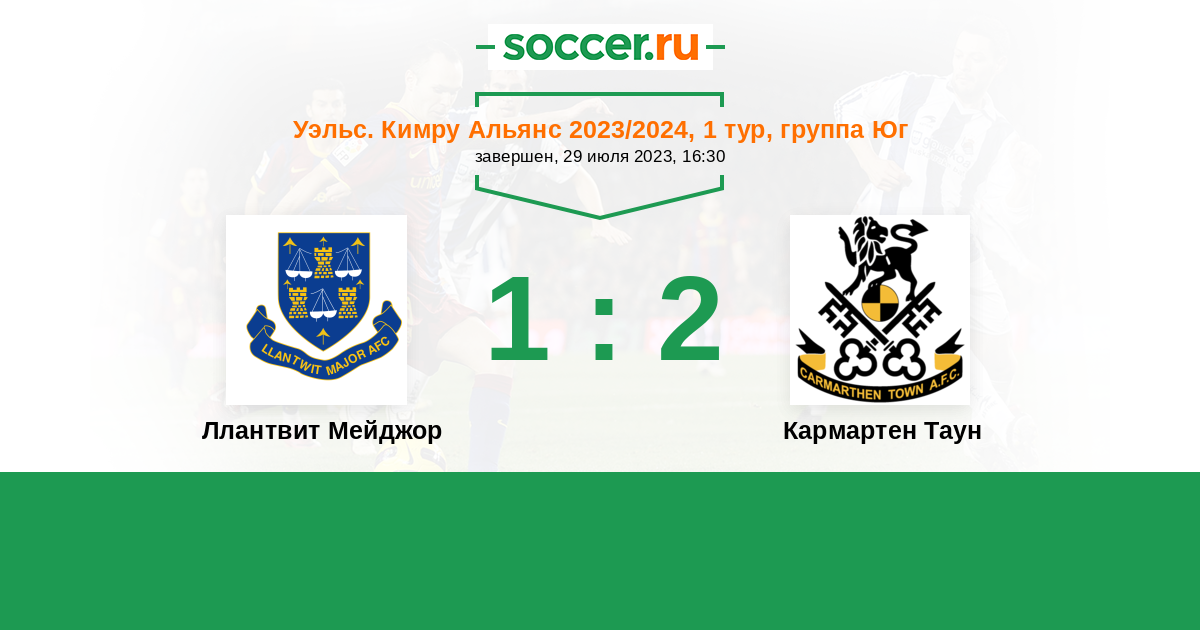 Ллантвит Мейджор - Кармартен Таун: обзор матча 29 июля 2023