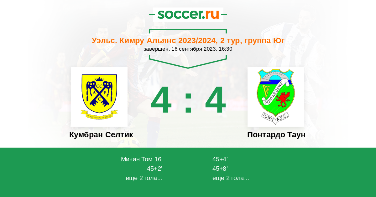 Кумбран Селтик - Понтардо Таун: обзор матча 16 сентября 2023