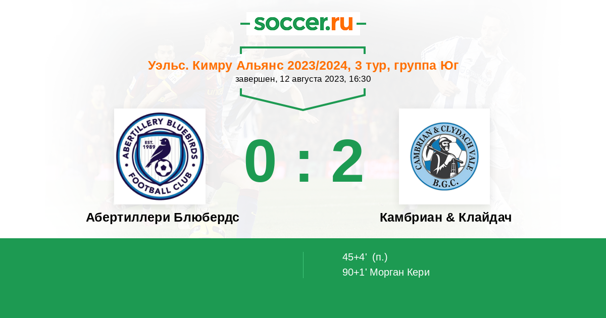 Абертиллери Блюбердс - Камбриан & Клайдач: обзор матча 12 августа 2023