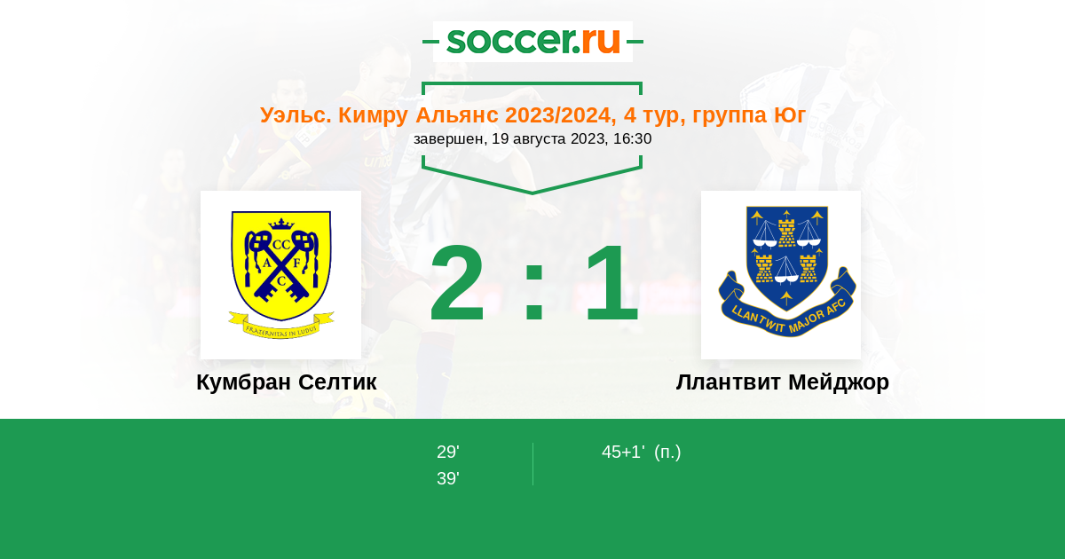 Кумбран Селтик - Ллантвит Мейджор: обзор матча 19 августа 2023