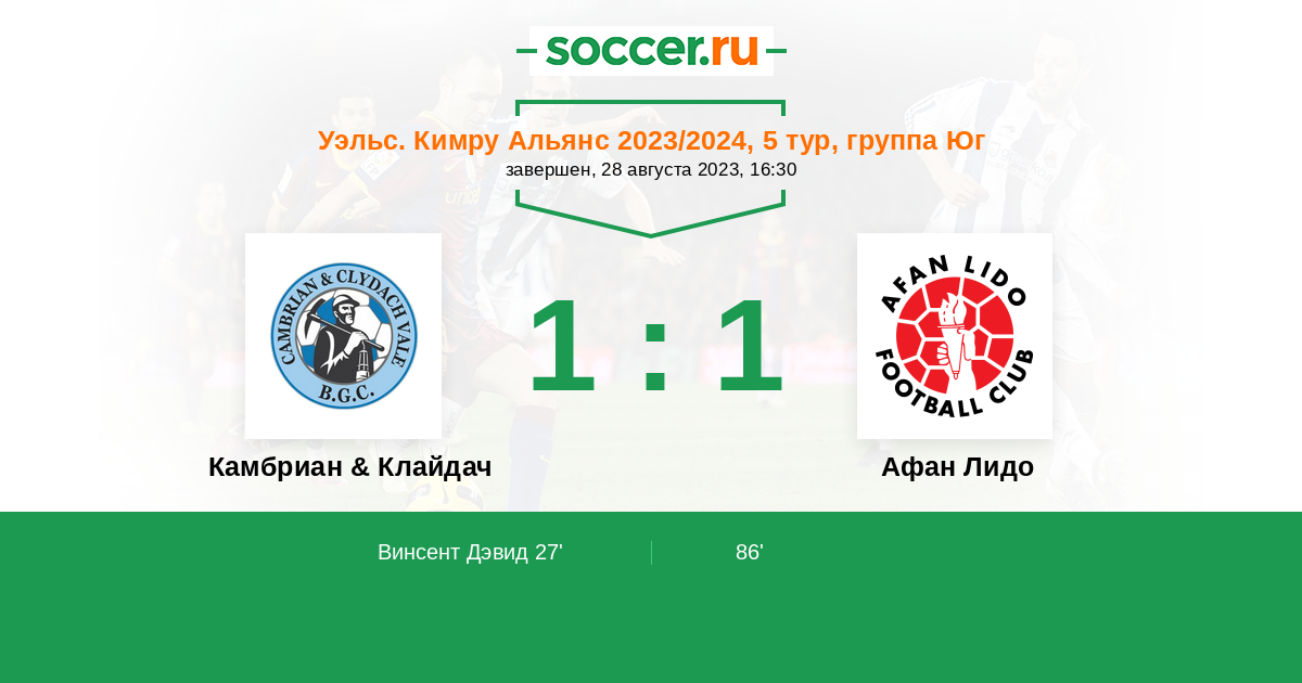 Камбриан & Клайдач - Афан Лидо: обзор матча 28 августа 2023