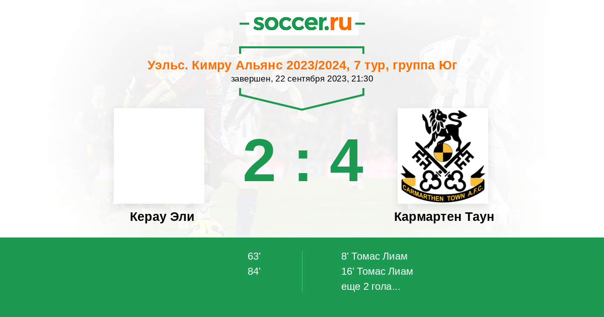 Керау Эли - Кармартен Таун: обзор матча 22 сентября 2023