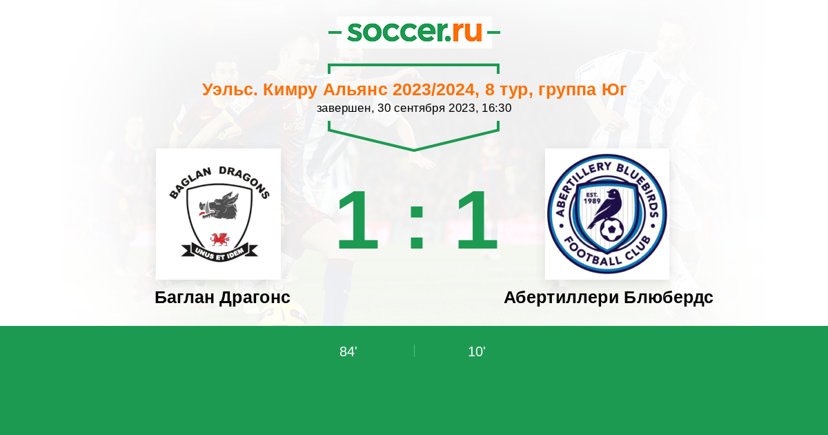 Баглан Драгонс - Абертиллери Блюбердс: обзор матча 30 сентября 2023