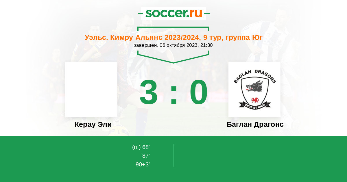 Керау Эли - Баглан Драгонс: обзор матча 6 октября 2023