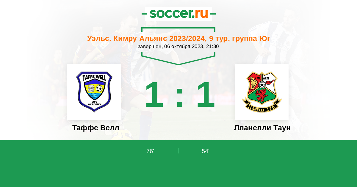 Таффс Велл - Лланелли Таун: обзор матча 6 октября 2023