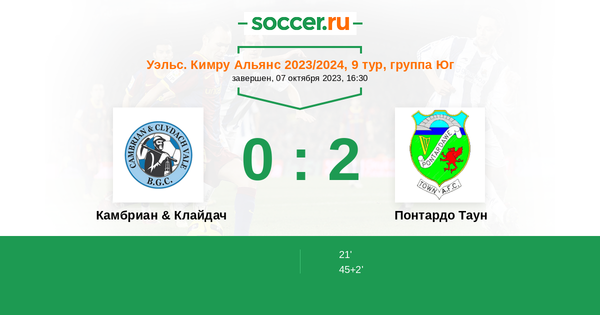 Камбриан & Клайдач - Понтардо Таун: обзор матча 7 октября 2023