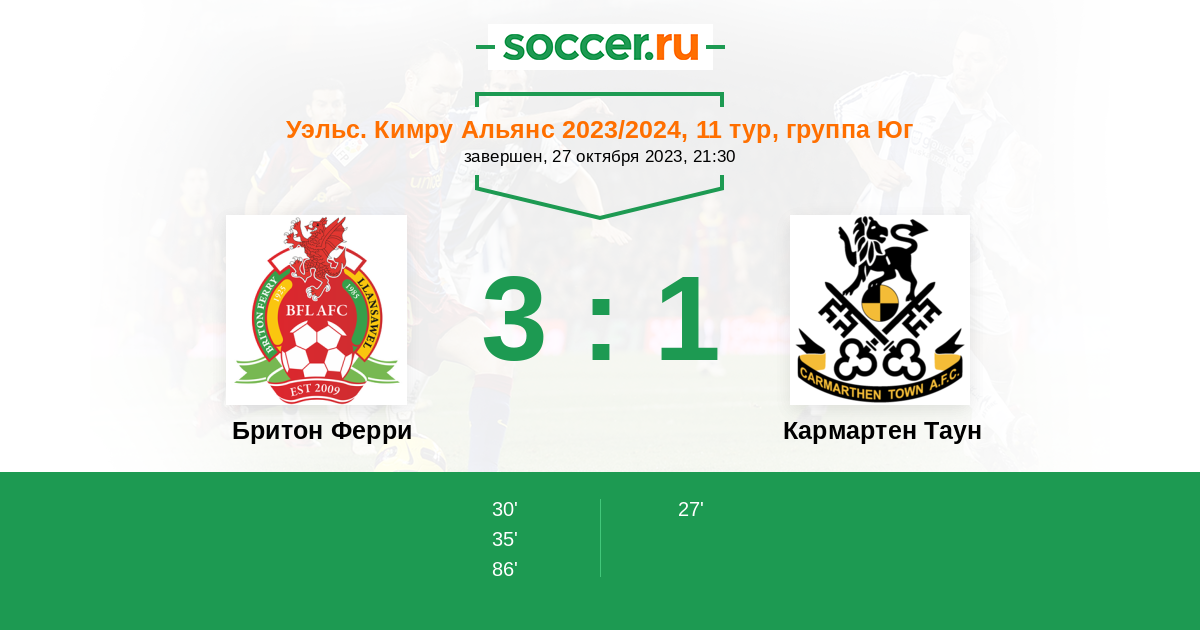 Бритон Ферри - Кармартен Таун: обзор матча 27 октября 2023