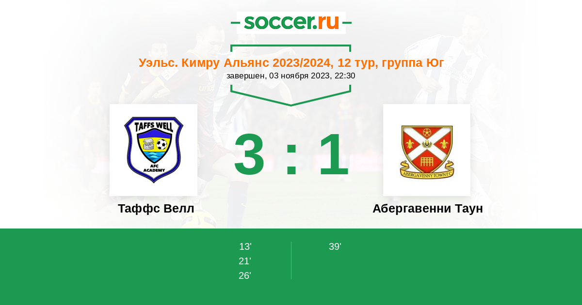 Таффс Велл - Абергавенни Таун: обзор матча 3 ноября 2023