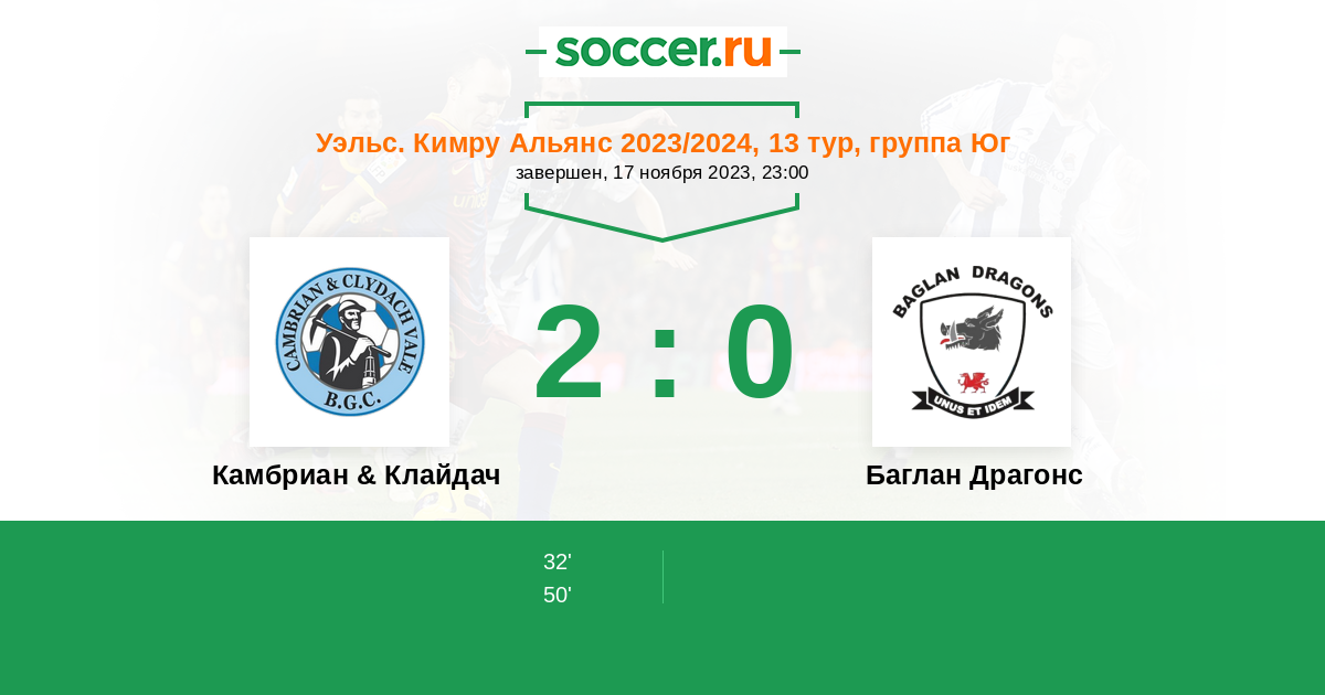 Камбриан & Клайдач - Баглан Драгонс: обзор матча 17 ноября 2023