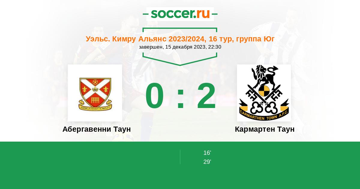 Абергавенни Таун - Кармартен Таун: обзор матча 15 декабря 2023