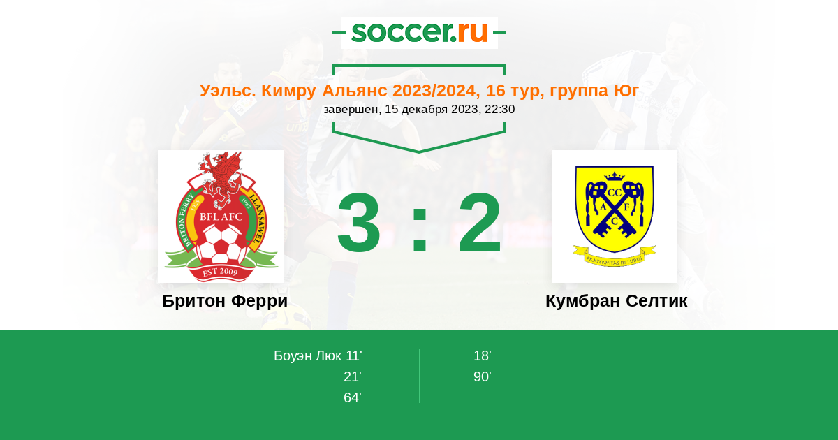 Бритон Ферри - Кумбран Селтик: обзор матча 15 декабря 2023