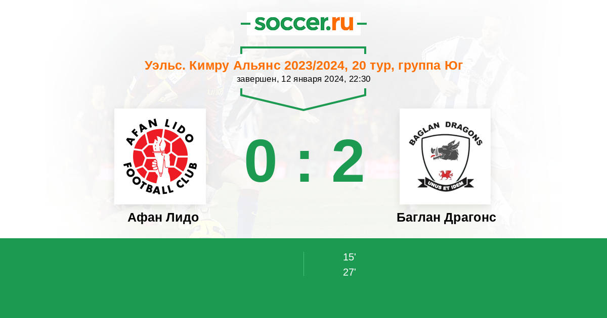 Афан Лидо - Баглан Драгонс: обзор матча 12 января 2024